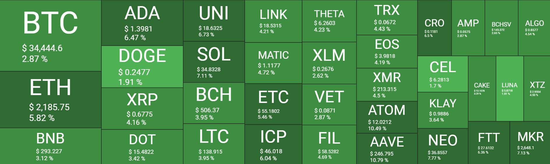 See the market for cryptocurrencies and tokens at a glance with our crypto heat map, showing price rises and falls.